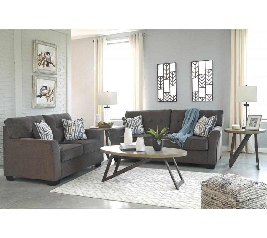 The sumptuous Alsen frame invites you to kick back in style. Ultra thick cushions are wrapped in a plush earth-tone upholstery sure to blend beautifully with your decor. Chic tufting and wedge armrests bring that touch of flair that sets this sofa apart.