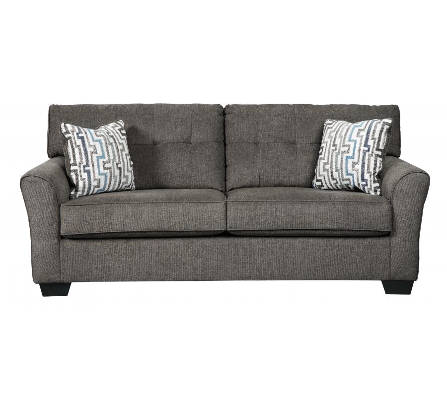 The sumptuous Alsen frame invites you to kick back in style. Ultra thick cushions are wrapped in a plush earth-tone upholstery sure to blend beautifully with your decor. Chic tufting and wedge armrests bring that touch of flair that sets this sofa apart.