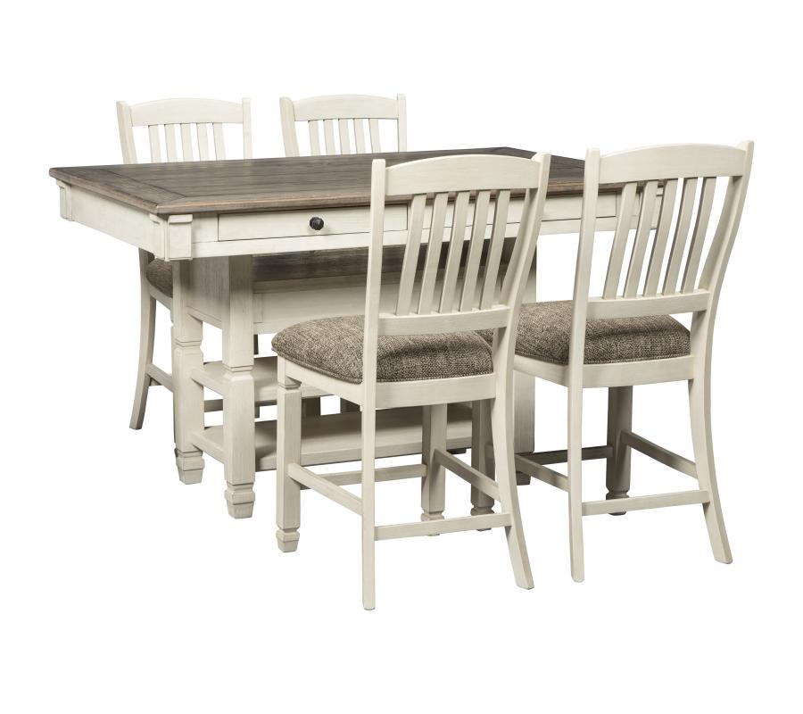 Enjoy beautiful cottage style in the classic Bolanburg dining room counter table set. With a rustic planked top and six convenient drawers, this table serves up casual with a vintage twist. The gently distressed tabletop creates the perfect spot for an impromptu gathering, with no need to head to the linen closet for extra place settings. Keep placemats, napkins and utensils on hand in the table's six built-in drawers—very practical for any living space.