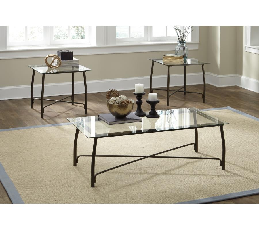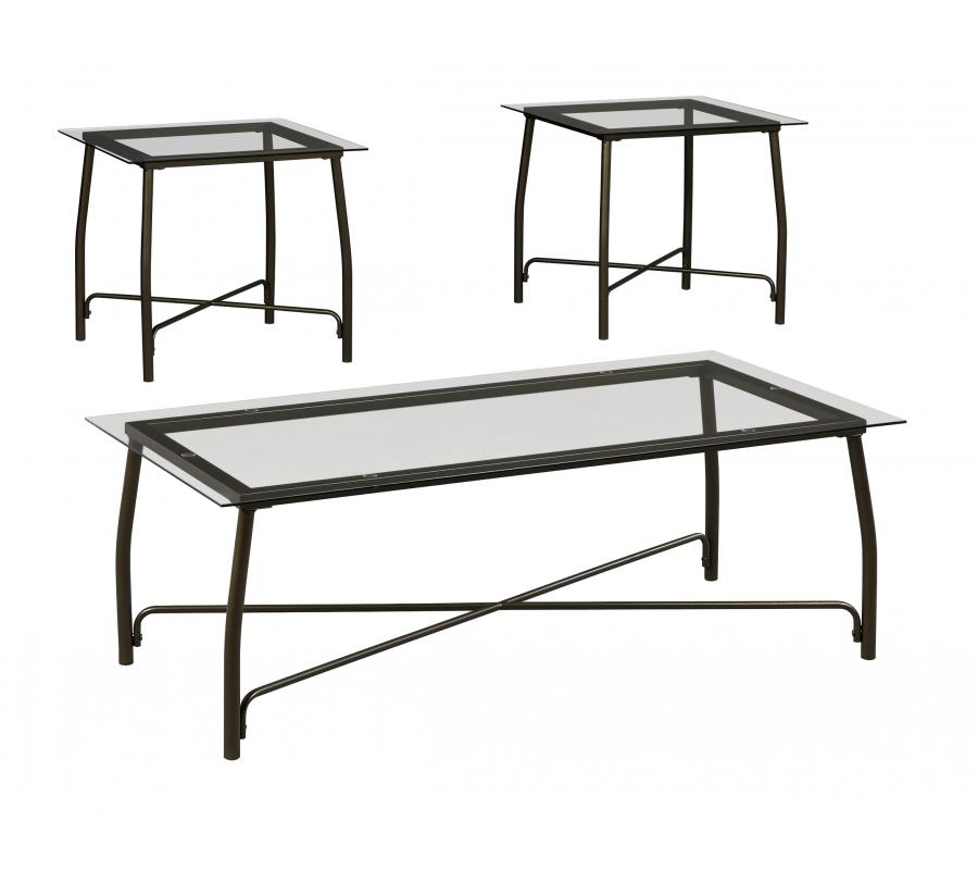 Take a stance for clearly contemporary style. Crafted of clear glass and bronze-tone metal, this coffee table set makes one delightful trio. Gentle curves and crisp, clean lines work beautifully together.
