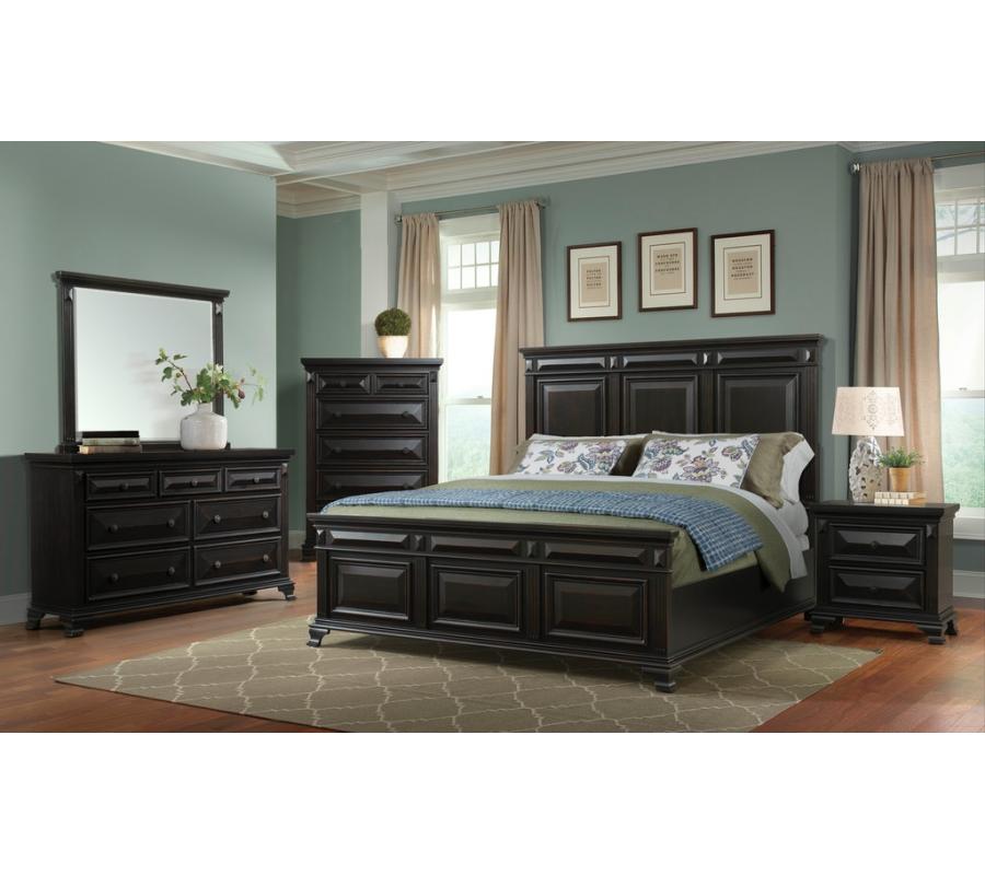The Calloway bedroom set is a show-stopper with its beautiful, beveled wood detailing. The high-profile dark wood provide warmth and comfort within any bedroom. This set will demand to be the center of attention in any bedroom, guest room or children’s room.