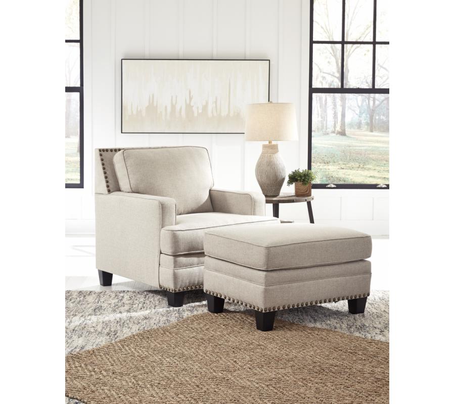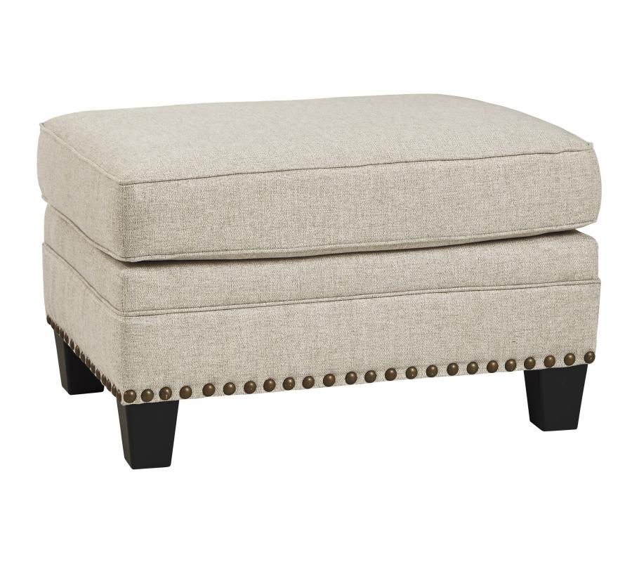 A case of contemporary and classic style influences coming together in a beautiful way, this ottoman in beige brings a fresh perspective to modern farmhouse living. Distinctive elements include nailhead trim and a lovely linen-weave upholstery for an up-to-date feel.