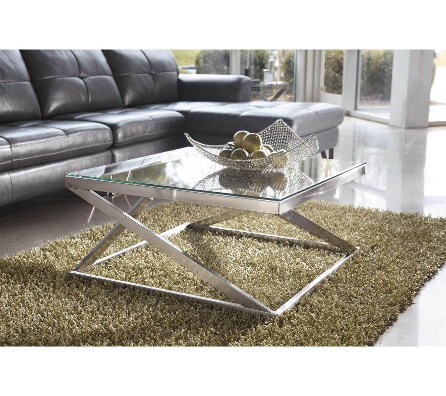 When it comes to clean-lined, modern style, this square coffee table comes full circle. Decked out in a chic finish, the angled metal base is striking from every angle. It’s topped off with a clear glass top with polished edging for a sense of refinement. Tables feature a modern contemporary design with cantilevered frames. Constructed with metal tube, in a brushed nickel color finish. Clear tempered glass tops with polished edge.