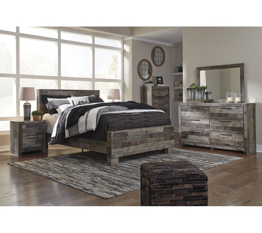 When you want a bedroom that makes a bold statement, Derekson is for you. Rustic butcher block finish is tastefully roughhewn, with appealing color variations and imperfections. The substantial design is hearty and robust, perfect if you love the feel of modern farmhouse living.