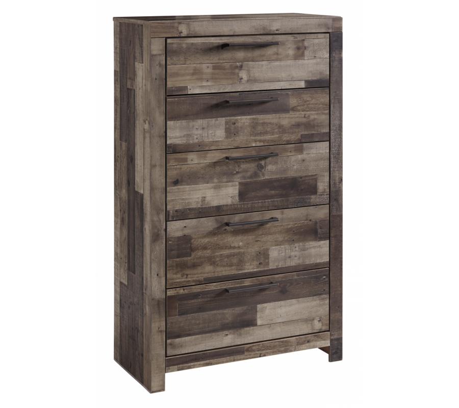 When you want a bedroom that makes a bold statement, Derekson is for you. Rustic butcher block finish is tastefully roughhewn, with appealing color variations and imperfections. The substantial design is hearty and robust, perfect if you love the feel of modern farmhouse living.