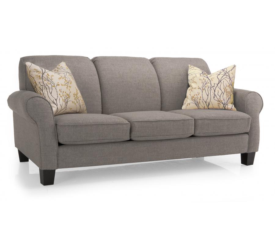 A case of contemporary and classic style influences coming together in a beautiful way, this brown sofa brings a classic look to your living room. It features attached back cushions, loose seat cushions, and a classic rounded arm rest that is slanted back from the feet to give an added flare. Two toss cushions come with this sofa that are cream base to warm up all living rooms.