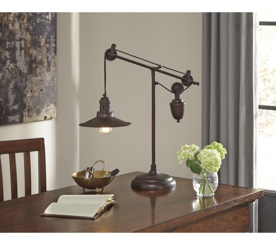 Pull off an urban industrial look with newfound flair with the Kylen table lamp. Fully functional “pulley system” is delightfully different. For the ultimate vintage touch, opt for Edison-style light bulbs.