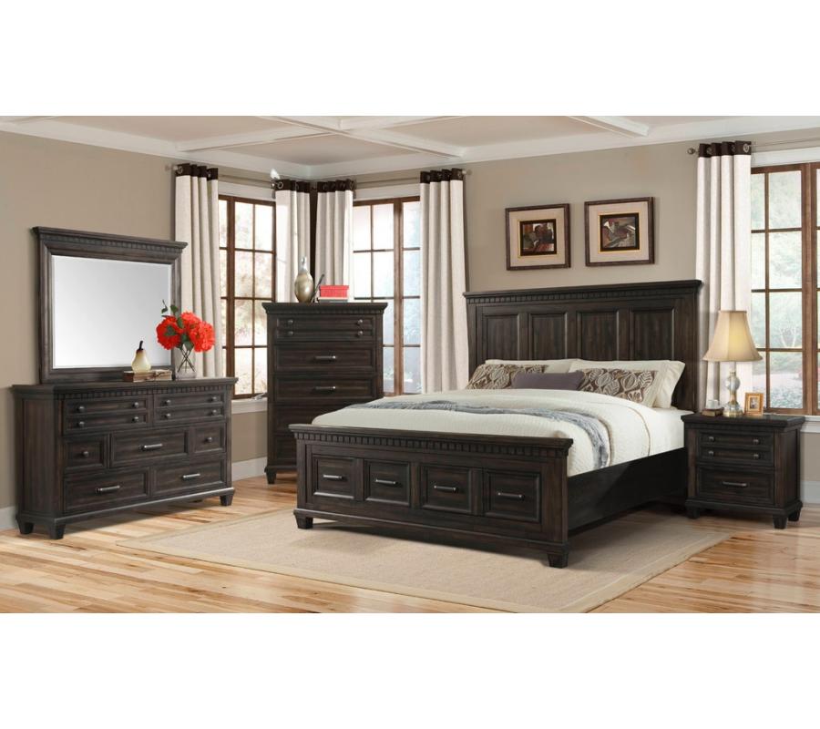 McCabe master bedroom boasts sultry sophistication with its beautifully distressed finish, special features, and an unbeatable price! Featuring a two convenient USB ports, a platform storage bed, and hidden drawers in the dresser, chest and nightstand, this collection is not only gorgeous but packed with functionality.