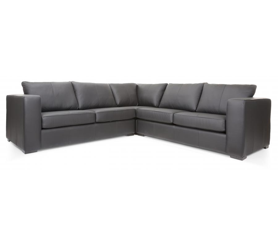 A case of contemporary and classic style influences coming together in a beautiful way, this three piece sectional in dark brown brings a classic sleek look to your living room. With its attached back cushions and flat wide rests it is a lovely clean cut piece. Distinctive elements include durable leather and padded arm rests.