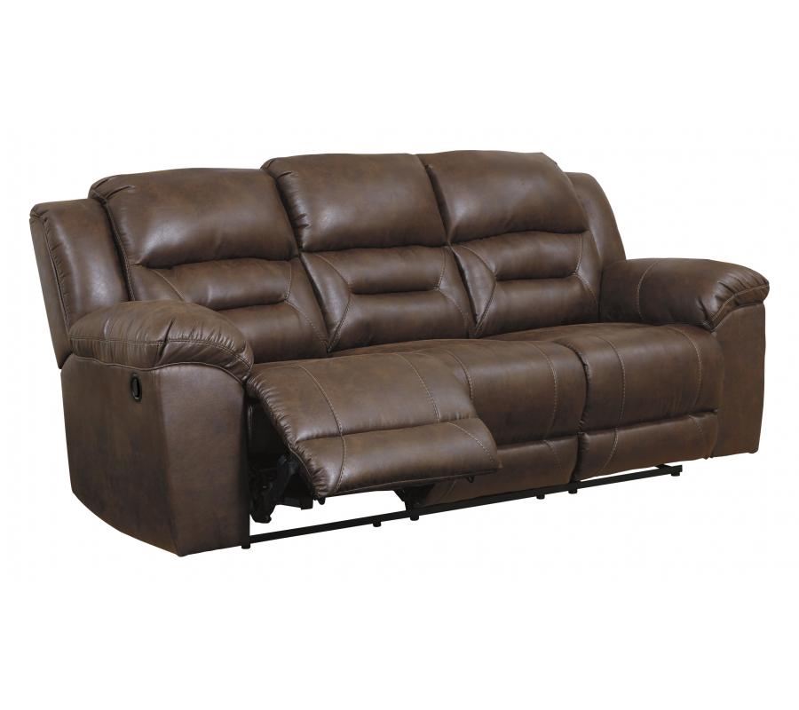 For those that love the cool look of leather but long for the warm feel of fabric, this reclining sofa delivers both with ease. Its high-performance padded faux leather is remarkably durable and easy to clean, just the thing for family spaces. Channel-stitched back cushions provide indulgent lumbar support for maximum comfort—not to mention fashion-forward flair.