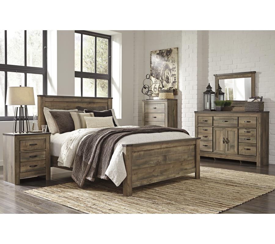 The Trinell Collection brings home a sense of authenticity. Rustic finish, plank-style details and nailhead trim pay homage to reclaimed barn wood, making for a chic look loaded with charm.